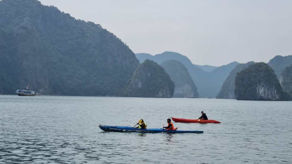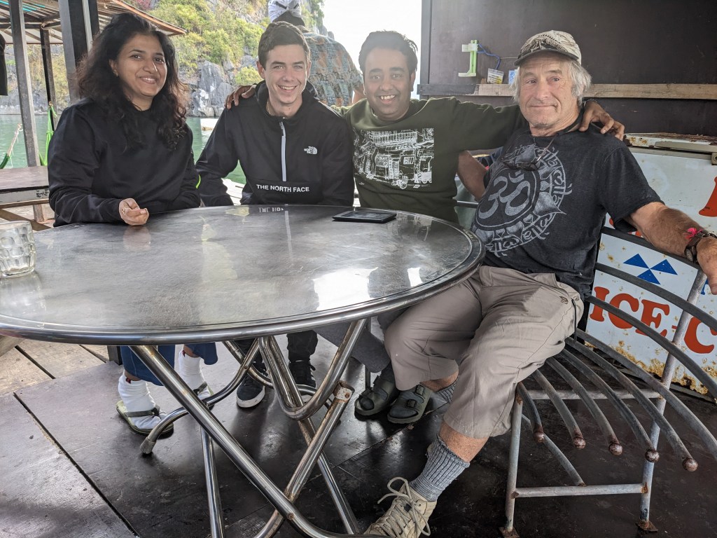 The floating homestay was located in the middle of sea. There was another home maybe at a distance of 5kms or so. We just had endless sea water and unique limestone mountains of Cat Ba that are similar to Halong Bay. The unique limestones mountains are formed over 500 million years and have unique significance in the geology. Halong Bay is extremely popular place however, is also bit crowded and commercial. Hence, we chose Cat Ba which is comparatively less commercial.