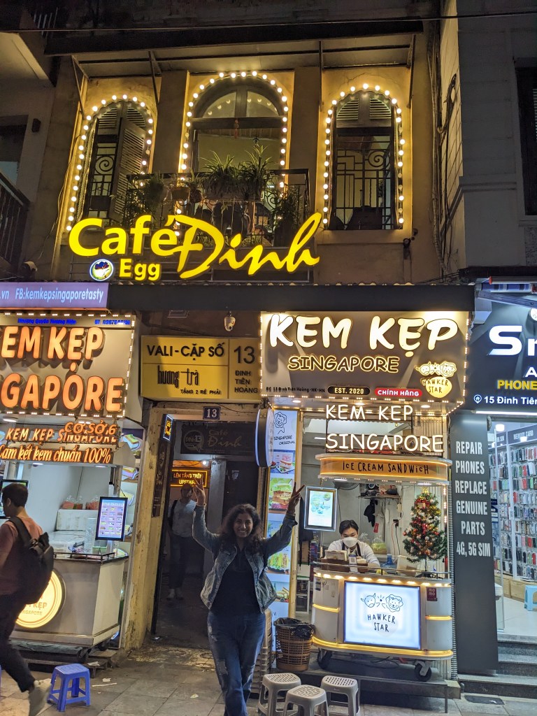 1. Dinh CaféThis place goes topmost in our list for two reasons, they serve the best egg coffee in Vietnam as this is where it was invented, and the old days vibes is unbelievable. The café started in 1946 has maintained the furniture, kitchen and even the wall paint from the olden days. Mostly the people come here usually are students, art lovers and music fans. Egg coffee is the specialty of Café Dinh, it’s still made with filter to keep traditional flavor. They also serve chocolate coffee, black coffee, etc. While being seated on extremely tiny chairs and low stools serving as tables we were surrounded by interesting people serving various stories. we spent 2 hours drinking coffee, reading book, and just observing people around us. We took one last trip again before bparding our flight.