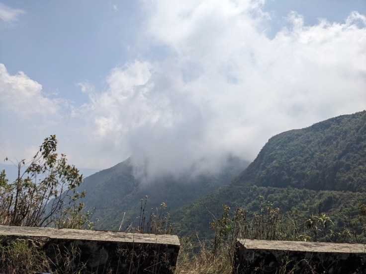 | Day 02 | Visit Shillong Cathedral taking about 1hr of touring time. Then in our car we headed towards Laitlum Canyon while making a pitstop in Smit village for some traditional red and Jadoh. Visit Laitlum Canyon for about 3 hours to soak in the view, clouds, and feel. (Definitely read details in Things to do section) Come back to Shillong and visit Ward’s lake for some quiet evening time and can enjoy pedal boating. Since it rained in the evening, we ended our day with dinner ordered over Swiggy to our homestay while we enjoyed some bon fire time in that lovely weather. |